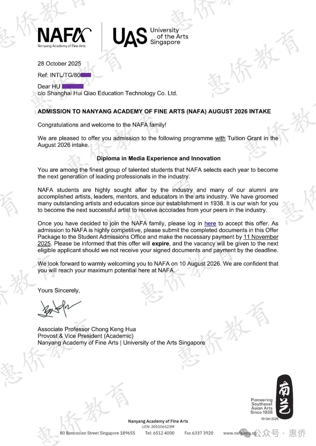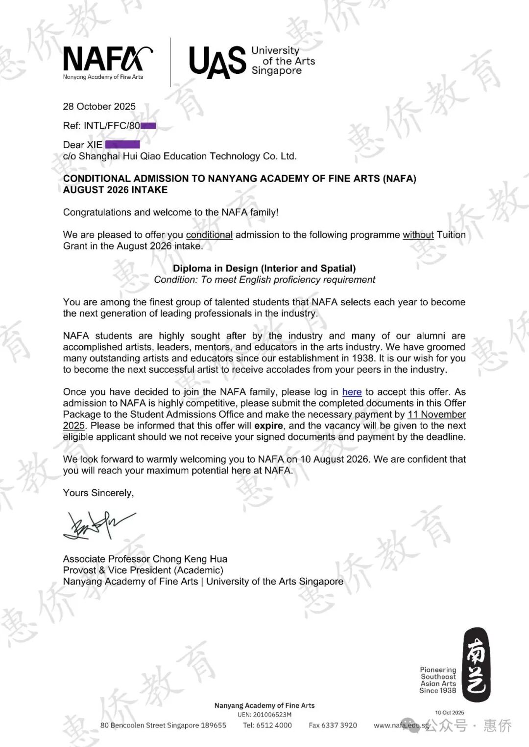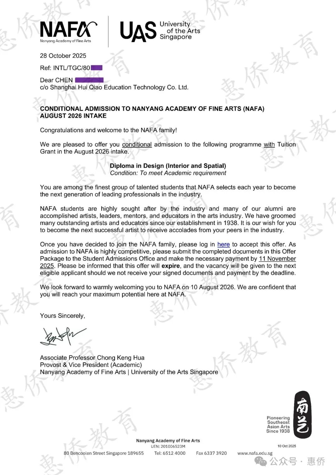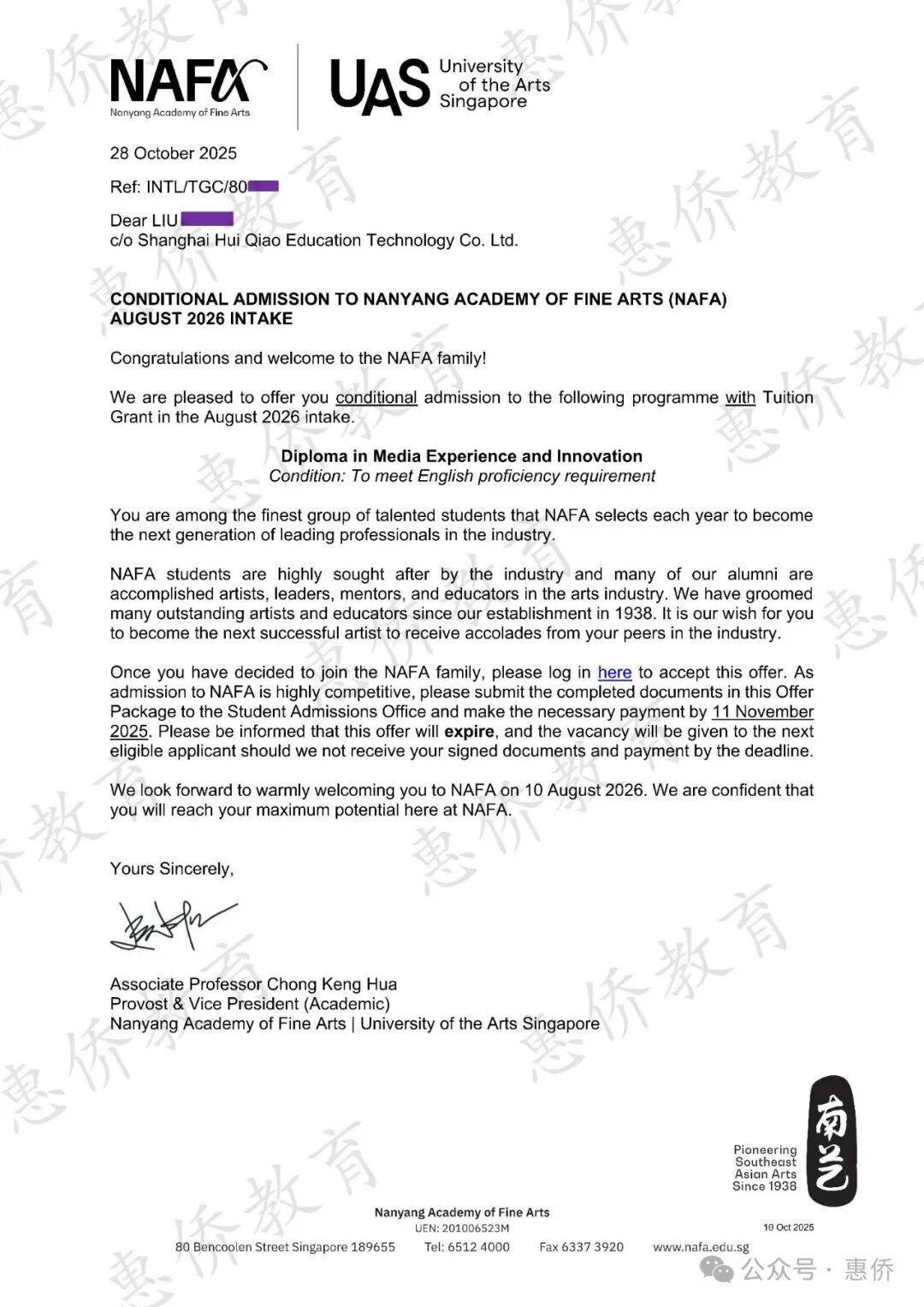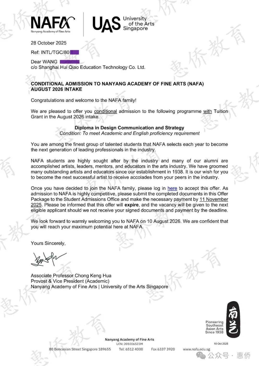 2026届NAFA-UAS官方授权上海招生办第一波录取学生,11位同学全部录取,其中10位获得政府学费津贴。